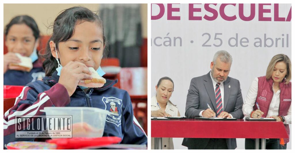 El titular del Ejecutivo visitó la Escuela Primaria «José Ma. Morelos y Pavón», donde participó como testigo de honor de la firma de convenio de colaboración entre la Secretaría de Educación del Estado (SEE) y el Sistema DIF Michoacán para la implementación y funcionamiento de dicho programa. El mandatario reiteró el compromiso de si gobierno para que niñas y niños cuenten con lo necesario para tener una educación de calidad.