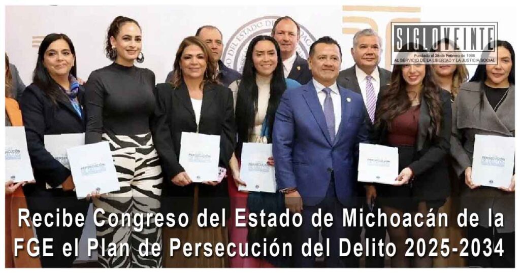 Al recibir de manos del Fiscal General del Estado el Plan de Persecución del Delito 2025-2034, la Presidenta de la Mesa Directiva, diputada Giulianna Bugarinni Torres, reiteró la disposición del Poder Legislativo para seguir construyendo un sistema de justicia más fuerte, más moderno y más digno para Michoacán.