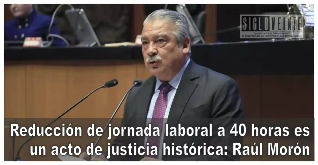 «Después de 109 años de no tocar la jornada laboral máxima, hoy el régimen humanista de la Cuarta Transformación cumple un compromiso histórico, legal y moral con quienes entregan su talento al servicio de la patria», sentenció el senador de Morena por Michoacán, Raúl Morón Orozco, al participar en el debate y votar a favor de la aprobación de la reforma que reduce de 48 a 40 horas la jornada laboral en México.