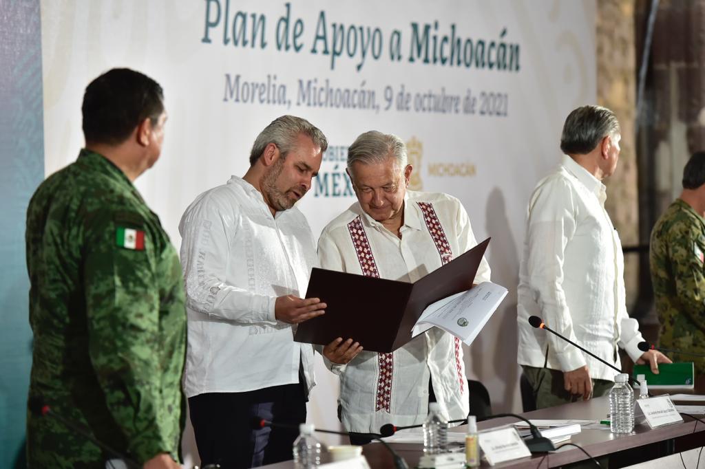 El Presidente de México, Andrés Manuel López Obrador, acompañado por prácticamente todo su gabinete, anunció el Plan de Apoyo a Michoacán y manifestó: «quiero decirle al pueblo de Michoacán, y al gobernador Alfredo Ramírez Bedolla que cuentan con todo nuestro apoyo».
