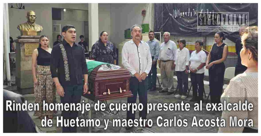 La mañana de este día jueves, en el patio del Palacio Municipal de Huetamo, se llevó a cabo un homenaje de cuerpo presente en memoria del profesor y expresidente municipal Carlos Acosta Mora, acto al que acudieron familiares, amigos, autoridades municipales, expresidentes municipales y representantes de diversos sectores sociales y productivos del municipio.