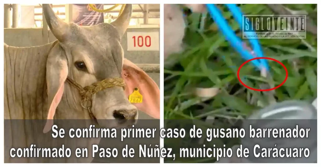 Autoridades sanitarias confirmaron el primer caso de gusano barrenador del ganado en la localidad de Paso de Núñez, perteneciente al municipio de Carácuaro, Michoacán, de acuerdo con un informe oficial emitido por la Dirección General de Salud Animal, a través de la Comisión México–Estados Unidos para la Prevención de la Fiebre Aftosa y otras Enfermedades Exóticas de los Animales (CPA).