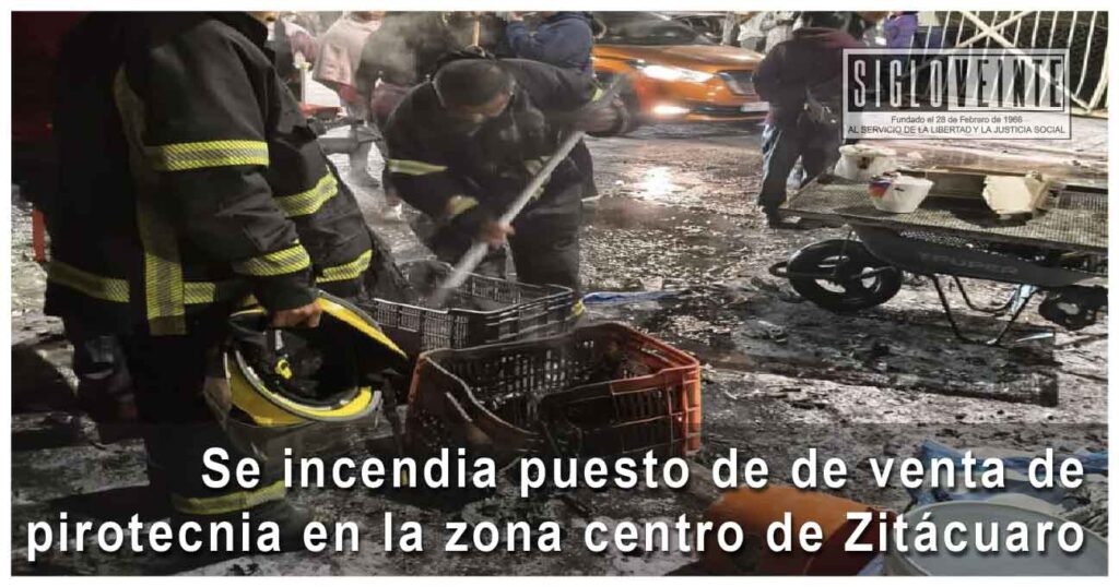 La noche de este sábado, un puesto ambulante dedicado a la venta de pirotecnia se incendió a un costado del mercado municipal de Zitácuaro, muy cerca del santuario de Nuestra Señora de Los Remedios, en la zona Centro de esta ciudad.