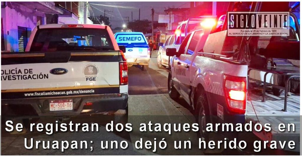La violencia volvió a hacerse presente en Uruapan con el registro de dos ataques armados ocurridos la tarde y noche de este domingo, en distintos puntos de la ciudad. Uno de ellos dejó como saldo un hombre herido de gravedad.