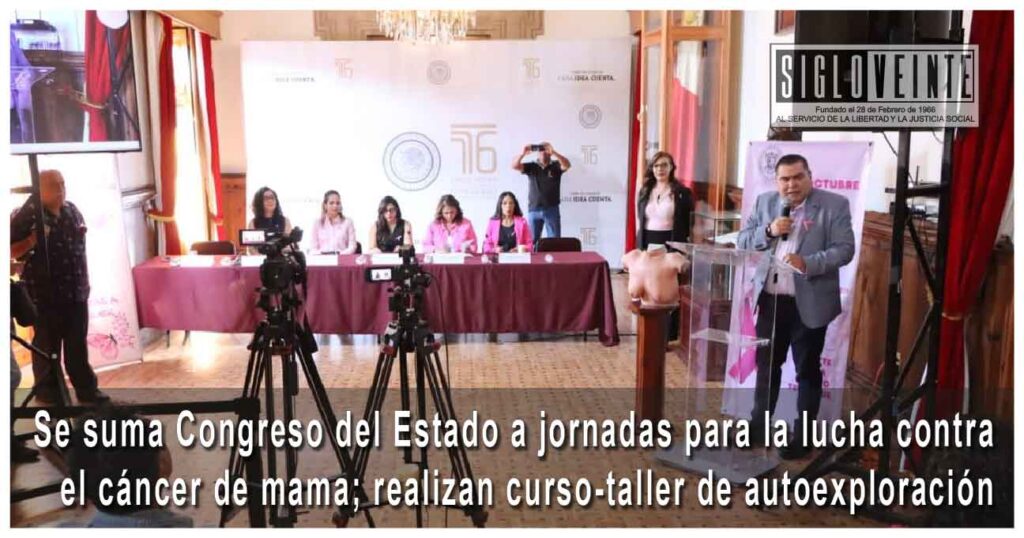 En el marco del mes rosa y la lucha contra el cáncer de mama, la diputada Giulianna Bugarini Torres, presidenta de la Mesa Directivas del Congreso del Estado, destacó la importancias de hablar de la lucha contra el cáncer de mama en estos espacios a fin de visibilizar este problema de salud y generar una cultura de prevención, además en donde las mujeres aprendan como autoexplorarse y en conjunto, compartir experiencias.