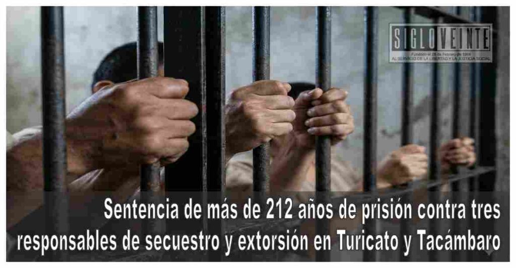 La Fiscalía General del Estado de Michoacán (FGE) a través de la Fiscalía Especializada en Combate al Secuestro y la Extorsión obtuvo sentencia condenatoria de 212 años con dos meses de prisión, en contra de José Rodolfo “N”, Joaquín “N” y Marina “N”, al acreditar su responsabilidad en los delitos de secuestro agravado y extorsión agravada, cometidos en agravio de diversas víctimas.