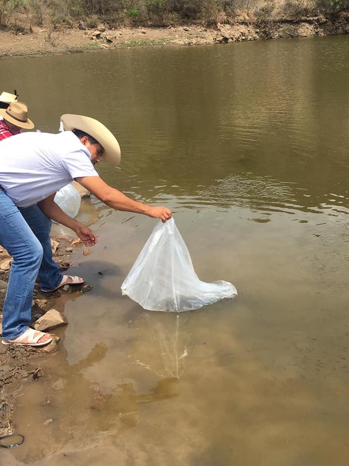 Para mejorar las condiciones de nutrición de familias de escasos recursos, además generar condiciones de autoempleo, en días pasados J. Félix González Gómez, presidente municipal de Nocupétaro, sembró treinta mil crías de mojarra tilapia en distintos cuerpos de agua en las localidades de Santa Bárbara y Ceina Prieta.
