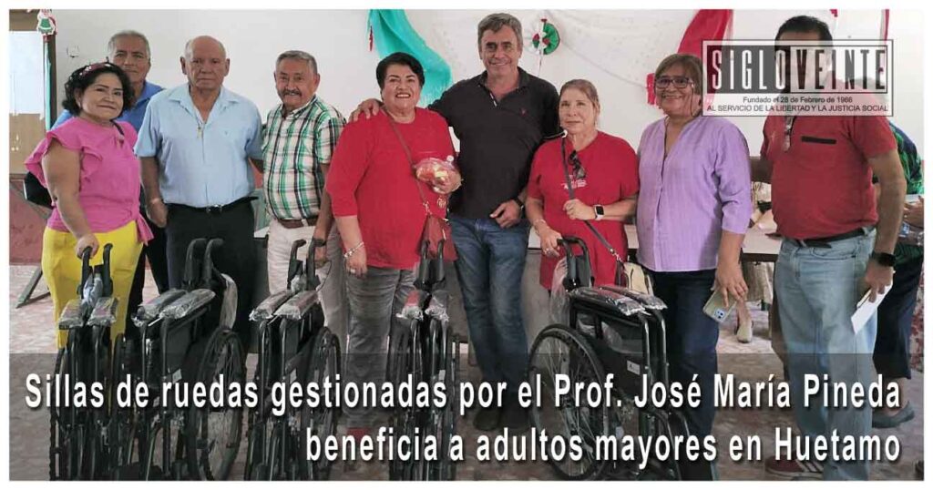 Gracias a las gestiones del profesor José María Pineda Gómez, secretario general del Comité Delegacional DIV-12 de Jubilados y Pensionados de Huetamo, cinco personas con discapacidad recibieron sillas de ruedas donadas por el Laboratorio de Ingeniería para la Construcción Labingco S.A. de C.V.