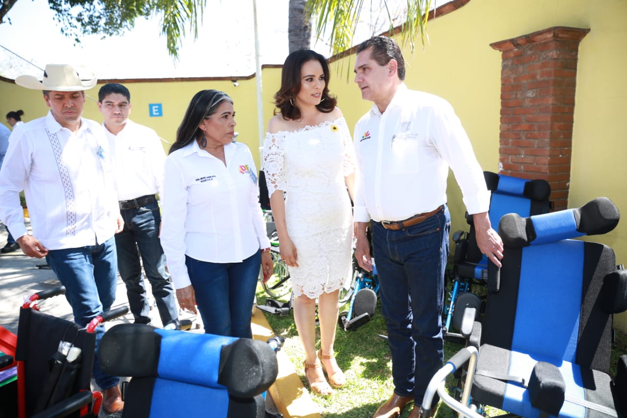 Esta entrega consistió en tres sillas de ruedas para menores con debilidad corporal infantil; tres sillas de ruedas para adultos con debilidad corporal; cuatro sillas de ruedas para niños; cuatro sillas de ruedas para adultos; cinco bastones; cinco pares de muletas; cinco bastones para personas con debilidad visual y una ludoteca.
