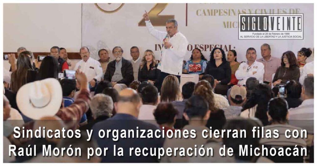 Sindicatos y organizaciones sociales, indígenas, campesinas y civiles, cerraron filas con el senador Raúl Morón Orozco para trabajar en conjunto por la recuperación de Michoacán, al reivindicar que su experiencia y liderazgo son claves para unificar al pueblo.