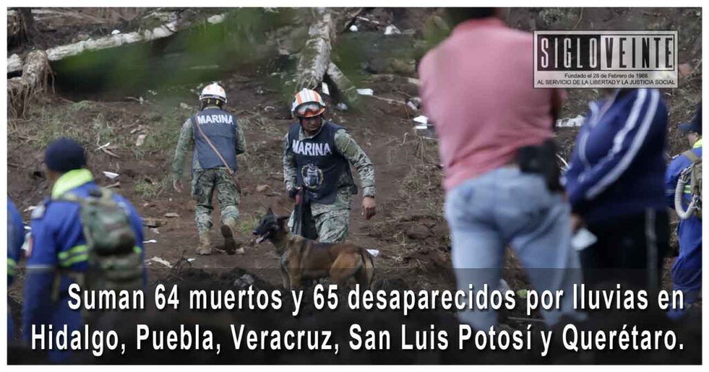 La Coordinación Nacional de Protección Civil (CNPC) informó que hay 64 muertos por las lluvias de los últimos días en al menos cinco estados.