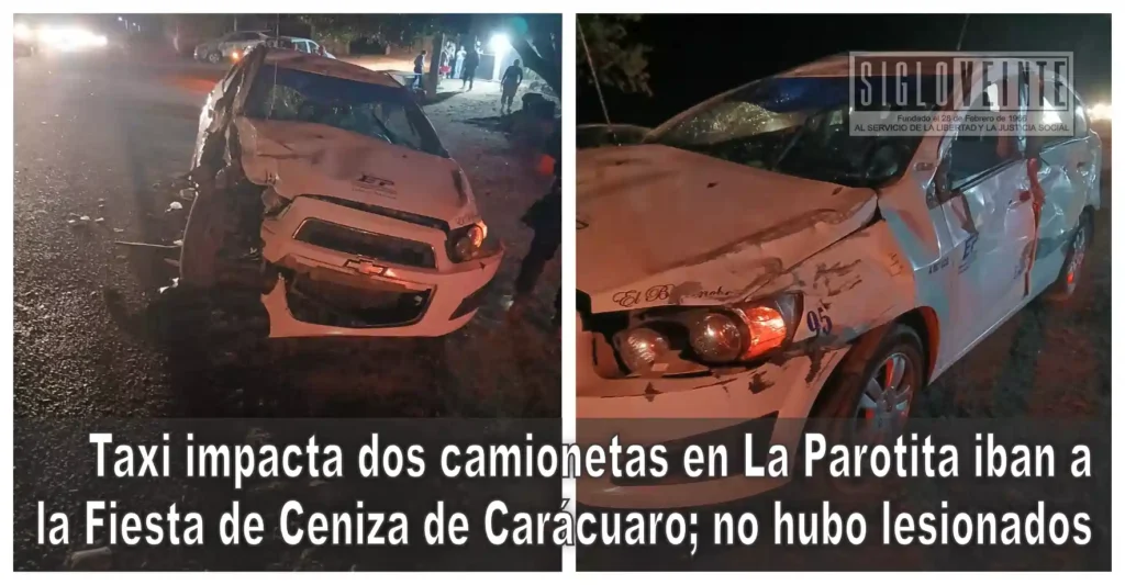 De acuerdo con los informes recabados en el lugar, el percance ocurrió cuando un taxi que circulaba de sur a norte intentó rebasar en un tramo con intensa carga vehicular, derivada del paso de cientos de peregrinos y automovilistas que se dirigen a Carácuaro para participar en la Fiesta de Ceniza y visitar el Cristo Negro de Carácuaro.