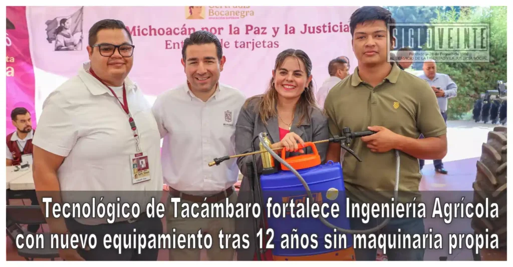 El Instituto Tecnológico Superior de Tacámbaro concretó la entrega de un tractor nuevo y equipo especializado destinado a la carrera de Ingeniería en Innovación Agrícola Sustentable, con lo que se pone fin a más de una década sin infraestructura propia para la realización de prácticas en campo.