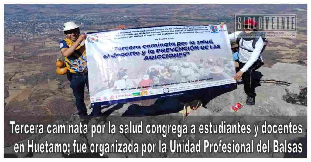 Con la participación de aproximadamente 60 personas, en su mayoría alumnos de instituciones de Nivel Medio Superior, se llevó a cabo la Tercera Caminata por la Salud, el Deporte y la Prevención de las Adicciones, organizada por la Unidad Profesional del Balsas de la Universidad Michoacana de San Nicolás de Hidalgo, en coordinación con el H. Ayuntamiento de Huetamo de Núñez y el Instituto de la Juventud Huetamense.