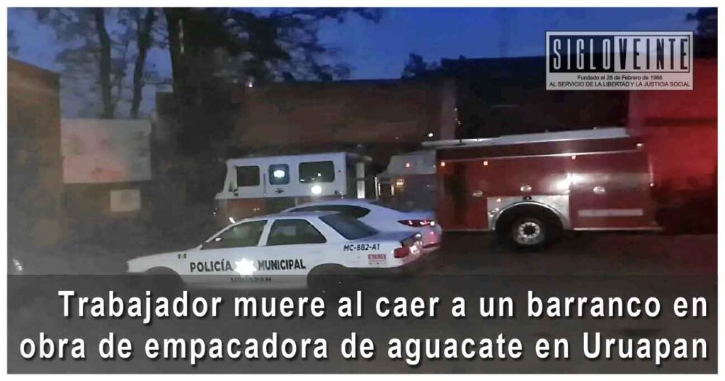 Un trabajador de la construcción perdió la vida la tarde de este martes tras caer a un barranco de aproximadamente 60 metros de profundidad, mientras realizaba labores en una empacadora de aguacate en el municipio de Uruapan.