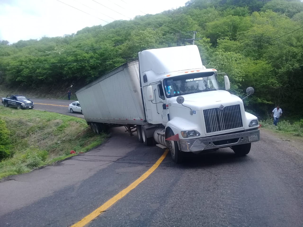 Por más de cuatro horas, un tráiler estuvo interrumpiendo el tráfico en la carretera Huetamo – San Lucas, a la altura del paraje y curva conocida como La Ceibilla, ya que estuvo a punto de volcarse, lo anterior debido a la falta de precaución y exceso de velocidad.