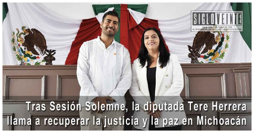 “Nuestra tierra clama justicia, exige libertad y paz; es imperante que la población pueda vivir en condiciones humanas y dignas”, afirmó la diputada Teresita Herrera Maldonado, coordinadora del Grupo Parlamentario del PAN en el Congreso de Michoacán, al conmemorar el 211 aniversario de la promulgación de la Constitución de Apatzingán.