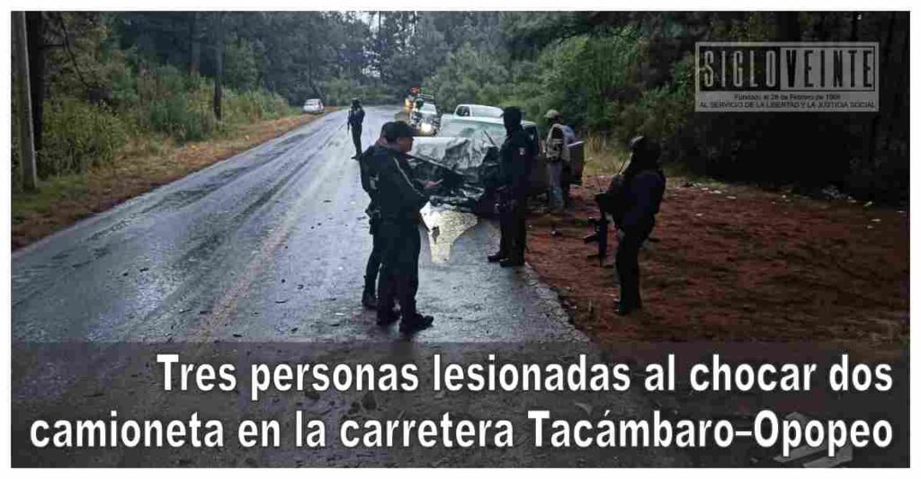 La tarde de este viernes se registró un aparatoso accidente vehicular sobre la carretera Tacámbaro–Pátzcuaro, en el tramo con dirección a la comunidad de Opopeo, a la altura de Cruz Gorda, el cual dejó como saldo tres personas lesionadas y cuantiosos daños materiales.