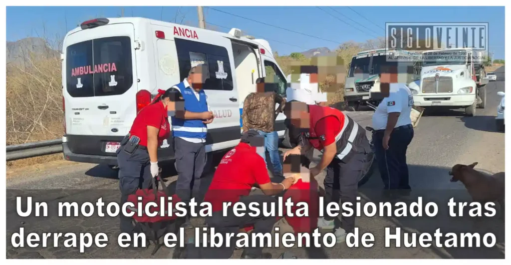 Un hombre de aproximadamente 30 años de edad resultó lesionado luego de sufrir un derrape mientras circulaba en motocicleta sobre el libramiento Batallón de Huetamo, a la altura del puente La Florida de la ciudad de Huetamo.