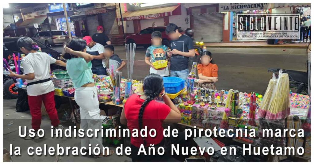 Durante la celebración de Año Nuevo se registró un uso indiscriminado de pirotecnia en distintos puntos de la ciudad de Huetamo, pese a los llamados preventivos emitidos por las autoridades para evitar riesgos durante las festividades de fin de año.