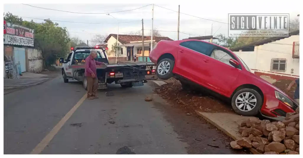 La mañana de este jueves, un vehículo se salió de la cinta asfáltica y terminó dentro de una obra en construcción ubicada sobre la Avenida Madero Norte, en esta ciudad.