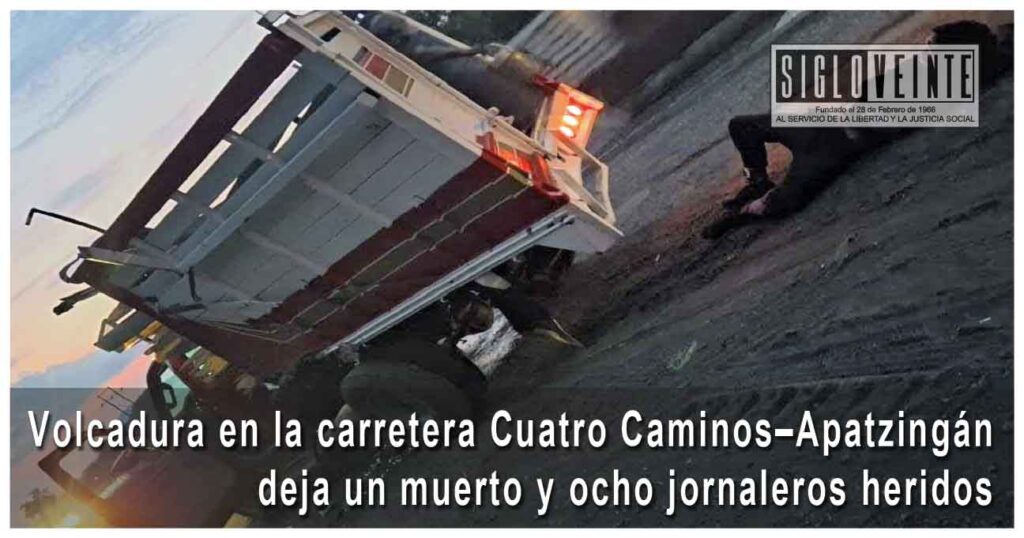 Una camioneta que transportaba a un grupo de jornaleros agrícolas sufrió un grave accidente la mañana de este jueves sobre la carretera Cuatro Caminos–Apatzingán, a la altura del puente de las vías férreas, dejando como saldo una persona fallecida y ocho más lesionadas.