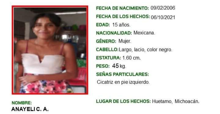 La Fiscalía General del Estado de Michoacán (FGE) logró localizar sana y salva a una adolescente de 15 años de edad, que fue reportada como desaparecida el pasado 6 de octubre, en el municipio de Huetamo.