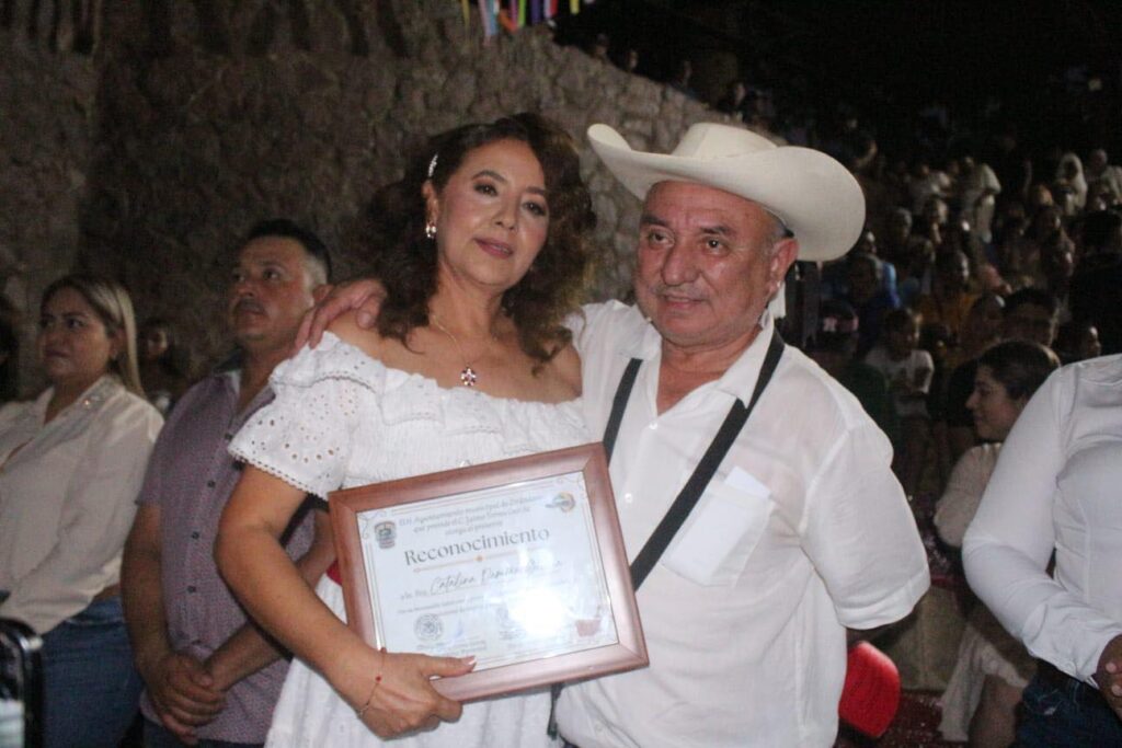 Uno de los momentos más emotivos de la noche fue el merecido homenaje a la señora Catalina Damián García, distinguida zirandarense reconocida por su invaluable aporte como promotora, instructora y bailadora tradicional. En el escenario, el presidente municipal Jaime Torres García le entregó un reconocimiento oficial y un estímulo económico, en nombre del pueblo, como muestra de gratitud por su incansable labor en la preservación del patrimonio cultural local.